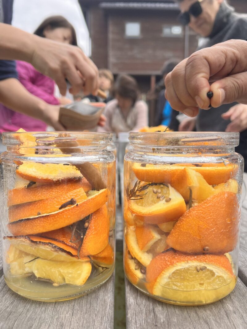 内 容:畑の夏みかんを収穫後、キノット作りと、完成後の果実の再利用方法を学び、作業後はゆっくりファームランチで質疑応答タイムも。