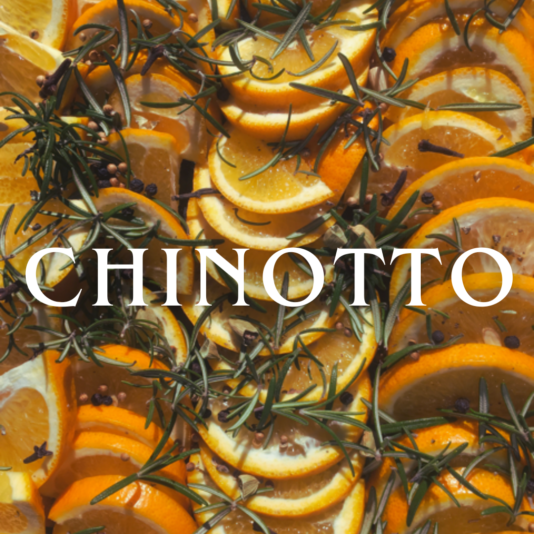 CHINOTTO=キノットとは16世紀初頭にイタリアに持ち込まれた、ベルガモットに似た柑橘類の品種の名。見た目は小ぶりで、苦味が強く果汁が少ないため、一般的なフルーツのようにデザートや菓子には使いにくかったそうですが、その特徴を活かしてシナモンやスパイス、ハーブを加えてできた飲み物が清涼飲料CINOTTOとして人気になりました。